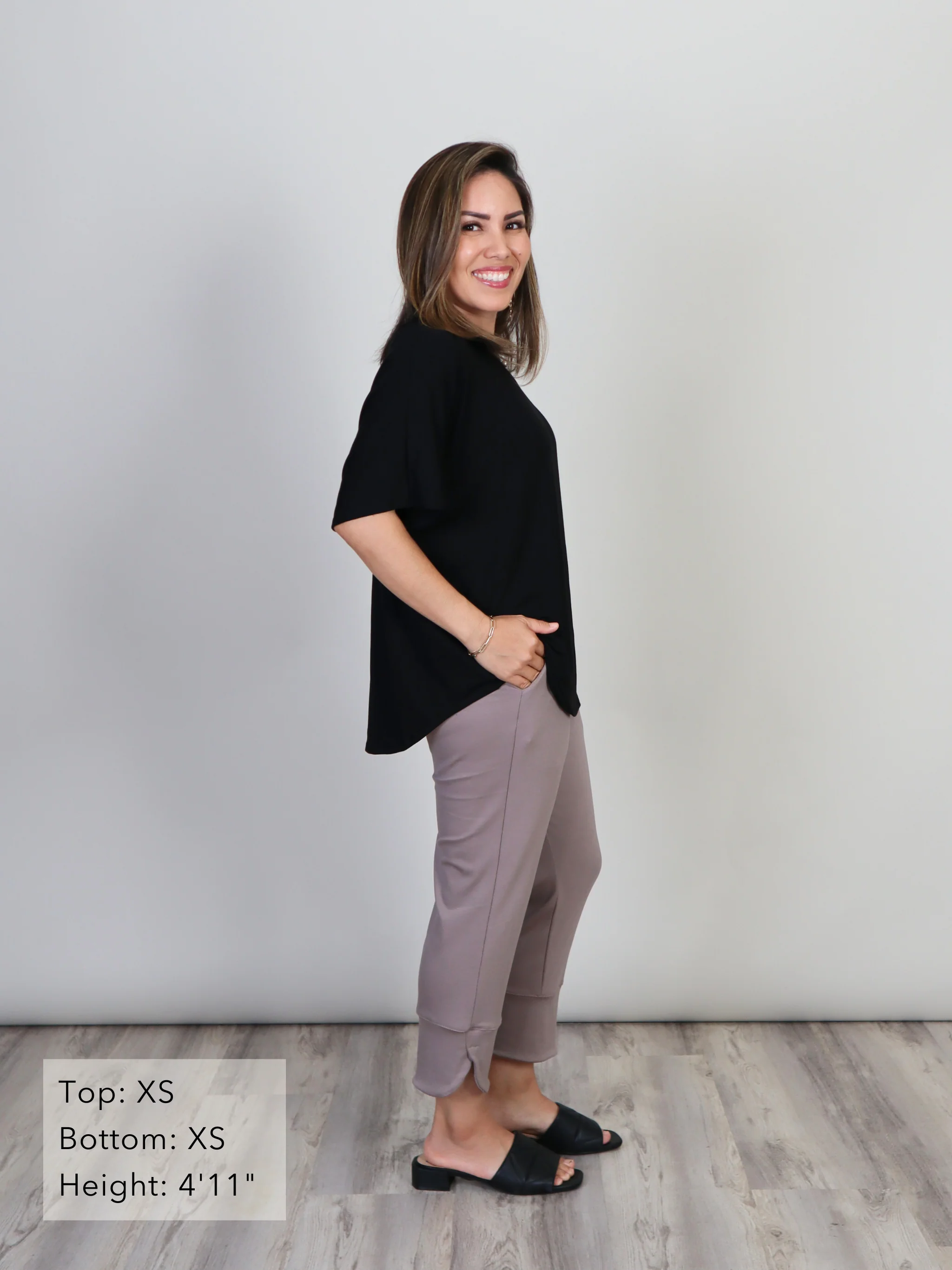 If you've been searching for a top that gives you arm coverage, doesn't cling to your midsection, and still feels polished enough to wear out—you’re going to love the Dayna Top. The longer dolman sleeves are roomy and breathable offering comfort and coverage without adding bulk. The curved hemline helps to elongate your leg line and flatters your shape, especially when styled with your favorite high-waisted pants. And because the fit is intentionally oversized, Dayna drapes away from the body without feeling boxy, giving you effortless movement and stylish coverage exactly where you want it.
